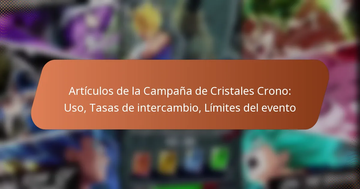Artículos de la Campaña de Cristales Crono: Uso, Tasas de intercambio, Límites del evento